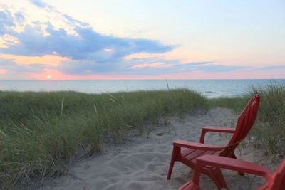 This charming beach house is the perfect getaway for all. Located right on Lake Michigan, you are just a short walk over the sandy dune to beautiful Sheridan Beach!